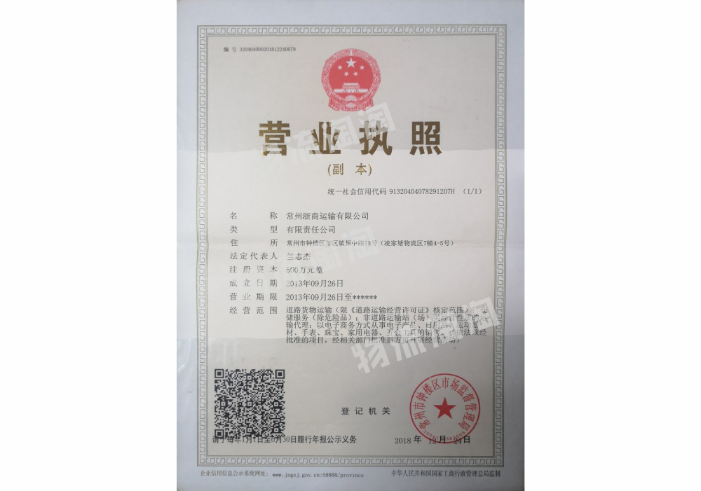 公司名称: 常州浙商运输有限公司(原甬通)